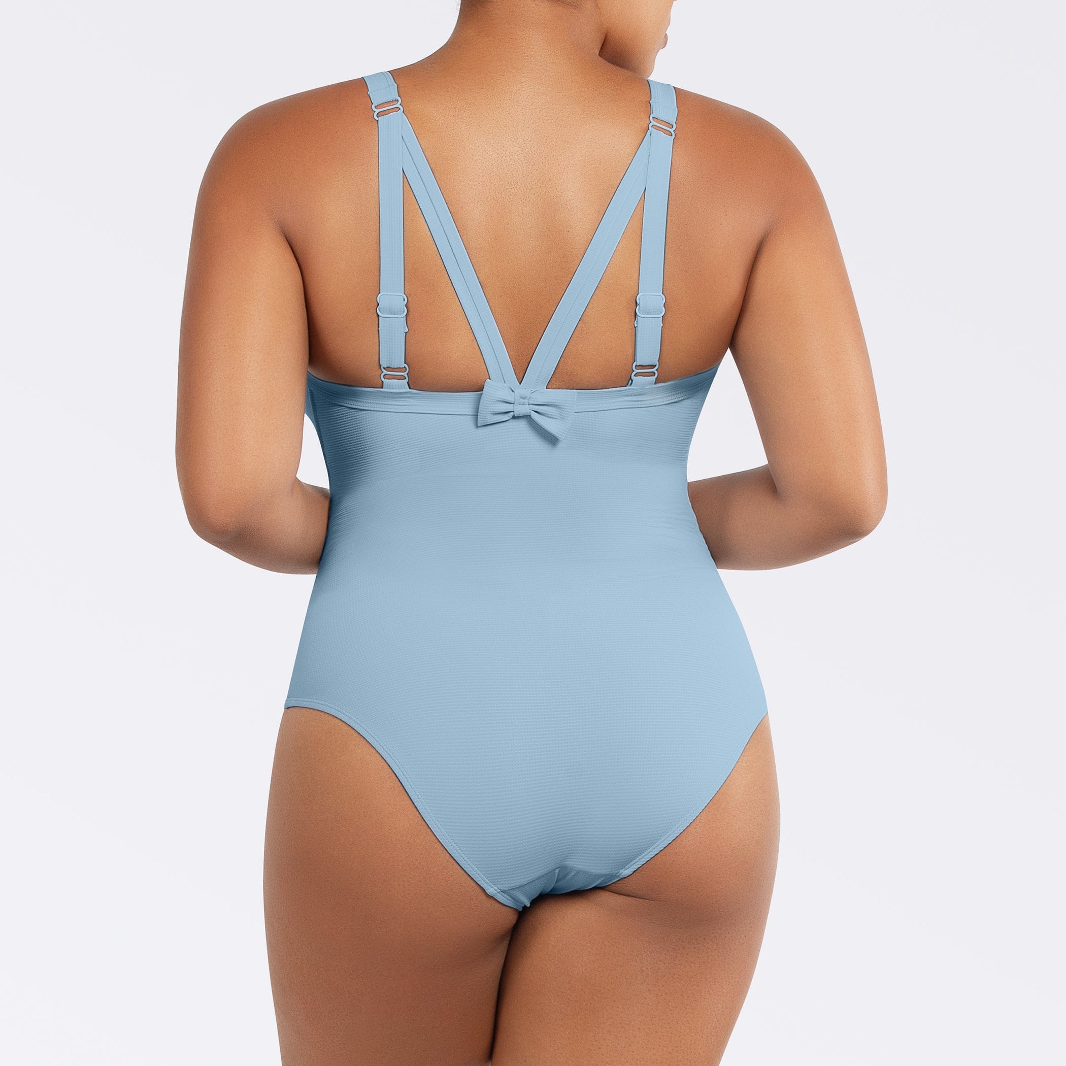 PARFAIT Vivien S8167 One Piece Swimsuit with Shelf Bra, Shirred Detail and Bow Back Design - Dream Blue